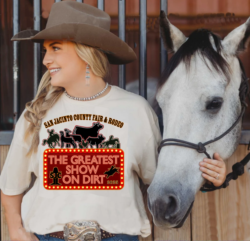We are thrilled to partner with San Jacinto County Fair & Rodeo this year! This soft style tee is a unisex fit and can be ordered with crystals or no crystals.