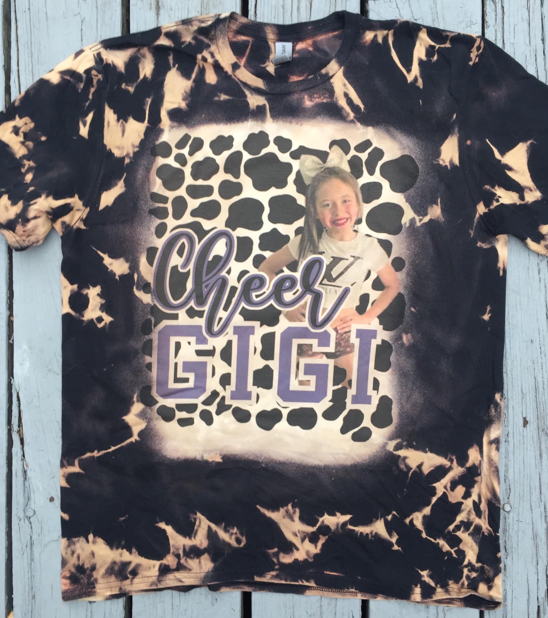 Create your own custom cheer mom tee with your favorite cheerleader. Just upload a high-resolution photo of your child, preferably no screenshots to insure the clearest image on the tee. Then choose the color of the lettering that you want to match your team colors. If you have any special requests or names to add, Gigi, Nana, Brother, Sister, Mimi, etc... please email us @ creekwataco@gmail.com with your order number and we can make sure to make the tee completely custom for you and your family members. Please keep in mind these are handmade, and made to order, so the bleaching will not be exactly the same on each tee, we get them as close as we can. There are no refunds on custom items, but satisfaction is guaranteed.